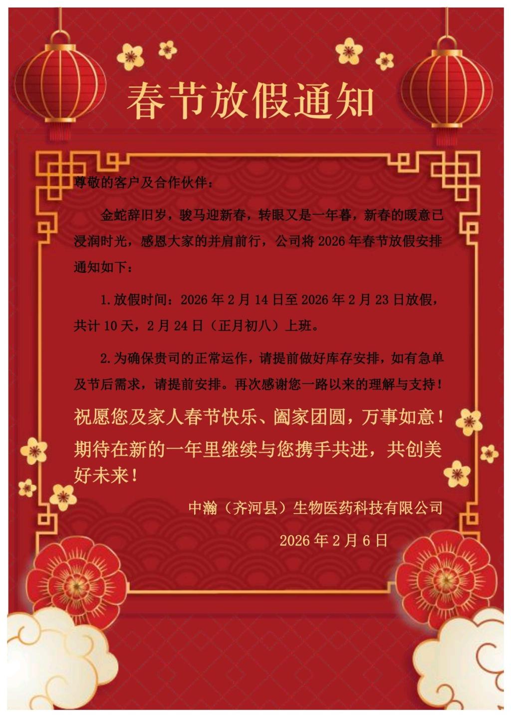 2026年春节放假通知